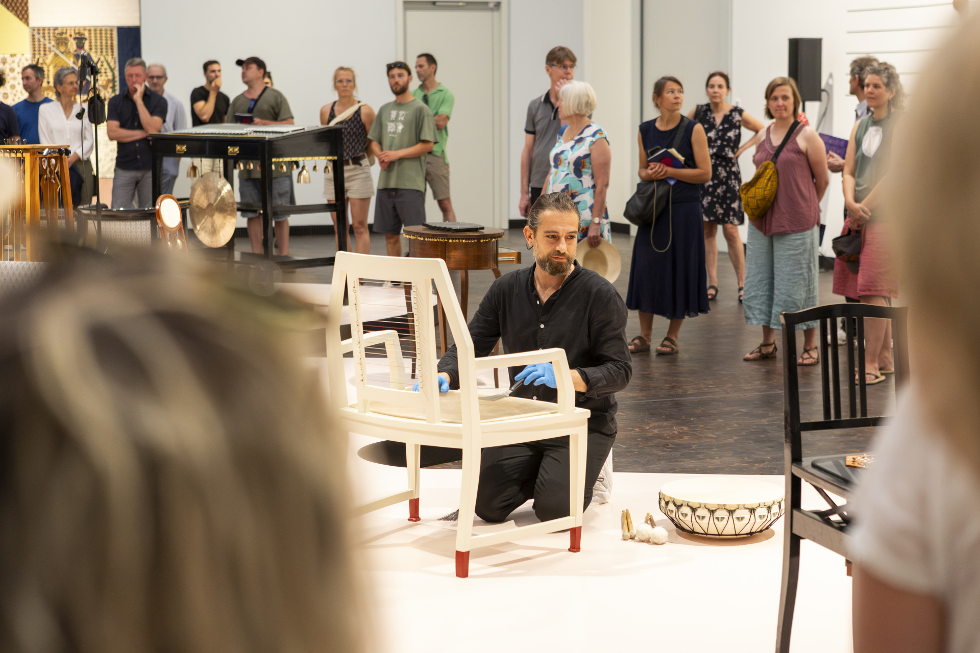 From June 29, 2025 to February 1, 2026, the Institut Mathildenhöhe Darmstadt will be presenting a solo exhibition of the internationally renowned installation and performance artist Nevin Aladağ (*1972 Van, Turkey, lives and works in Berlin). In her multifaceted works, Aladağ playfully intertwines artistic forms of expression such as sculpture, painting, textiles, video and sound. By experimenting with form, material and sound, the artist activates a new perceptual experience. For the exhibition at Mathildenhöhe Darmstadt, Aladağ has created a site-specific installation that explores the boundaries of genres, the human body and space. The interplay of visual art, music and performance creates resonance spaces that open up a variety of associations on themes such as identity, community and globalization.